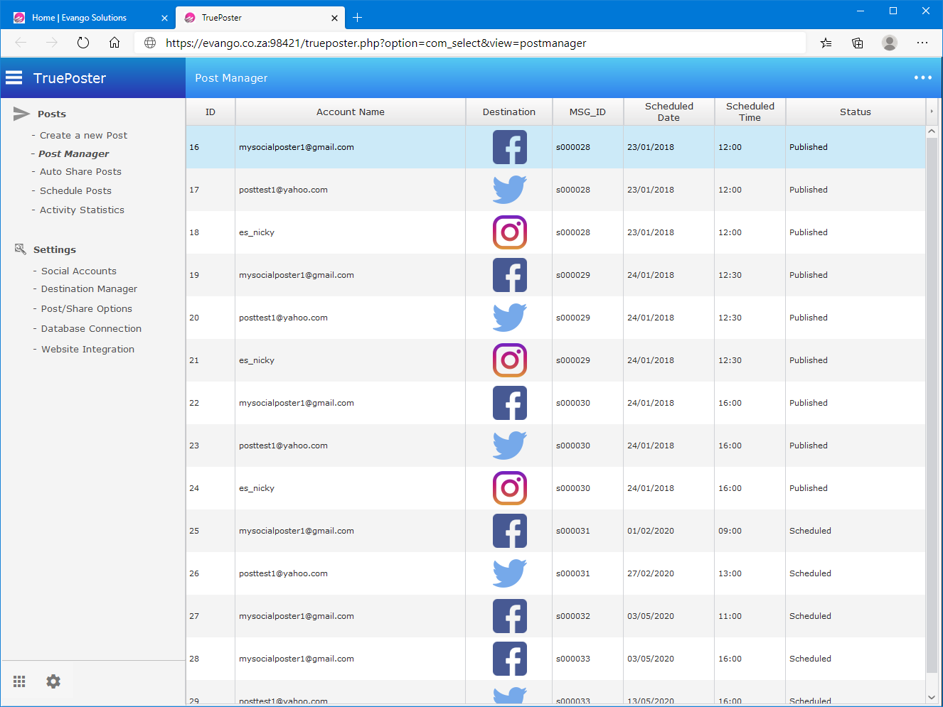 TruePoster is a tool that allows you to automate and schedule your posts to popular social media sites. Currently supports Facebook, Twitter and Instagram.